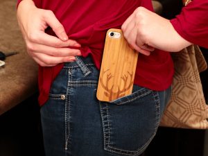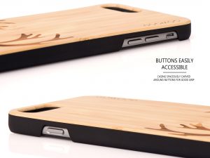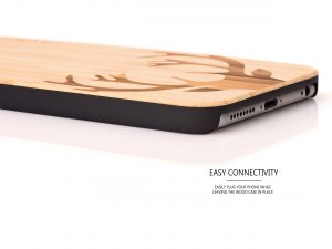 iPhone 7 / 8 / SE wood case bamboo backside engraved deer polycarbonate sides
