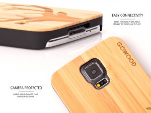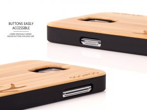 Samsung Galaxy S5 case bamboo wood backside with beautiful engraved deer art and polycarbonate sides