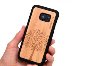 Samsung Galaxy S7 wood case bamboo backside engraved tree polycarbonate sides